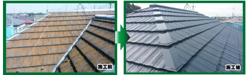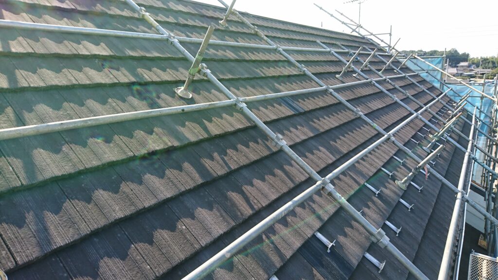 10年以上、放置された屋根の表面は、コケ・カビ・汚れに覆われております。
