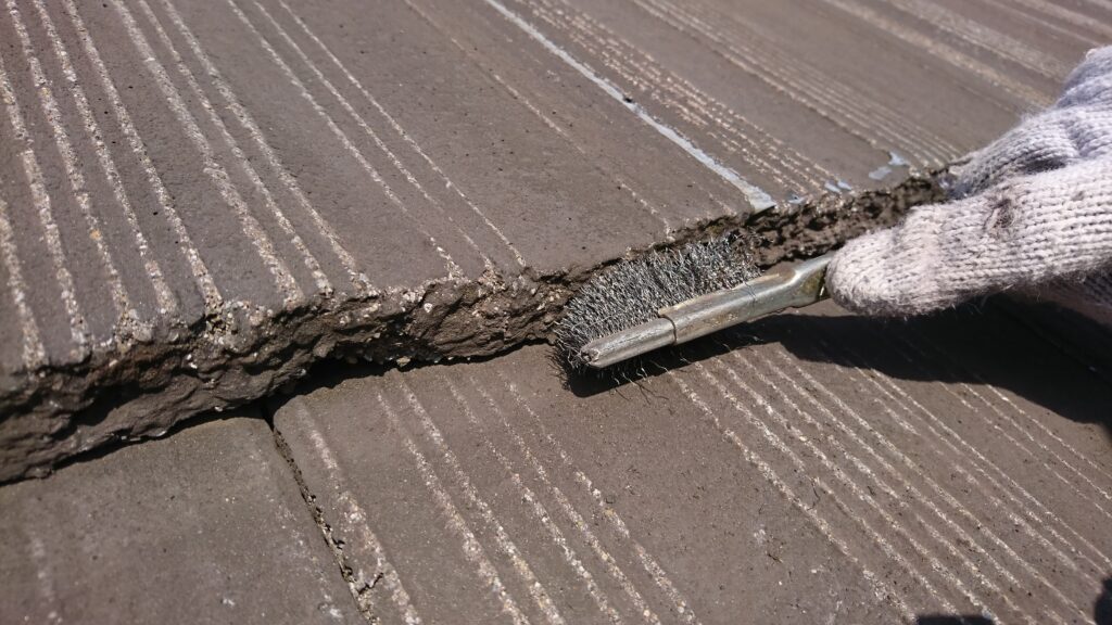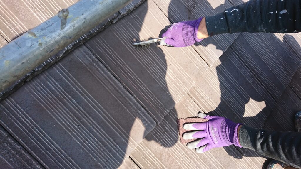 1.高圧洗浄で落とし切れないスラリー層をワイヤーブラシなどを使い.落とせる所までケレンした後に洋瓦専用の下塗り材を最低でも2回〜塗布していきます。(状態によっては3回〜が必要になる場合もあります)
