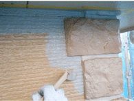 コーナーの石材風のブリキは塗り潰すのはもったいないので、