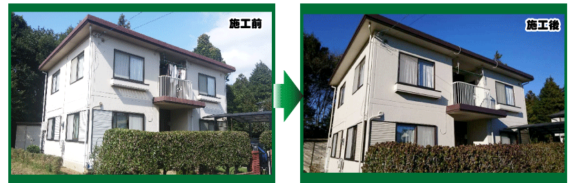 オオスメのリーズナブル施工のお見積りでの塗装工事でした。ALCに吹き付け塗装をしたタイプでひび割れは、ほとんどありませんでしたが