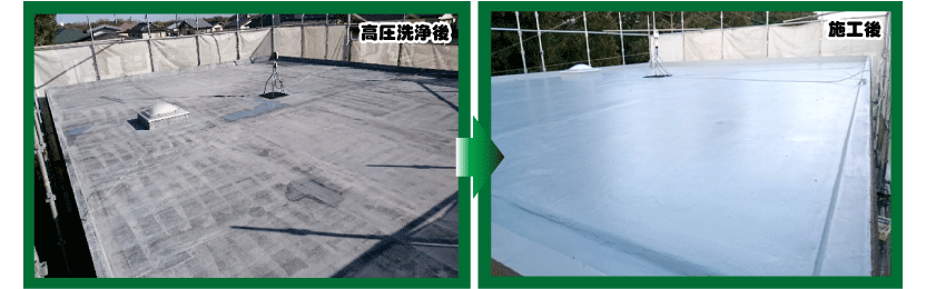 ※施工時の勾配の角度が低いため少しの雨でも水が停留しているために塗装が難しい箇所でしたが(この箇所の状態を話して承諾を得てから)