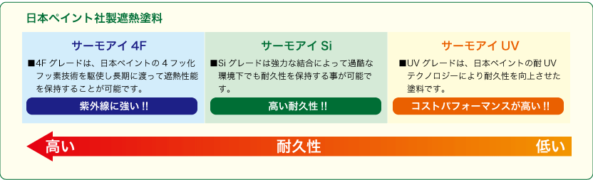 🔹塗料のグレードが高いほど塗膜も安定してくるので塗膜が強靭な程、遮熱効果もより持続するのではないかと思います。
