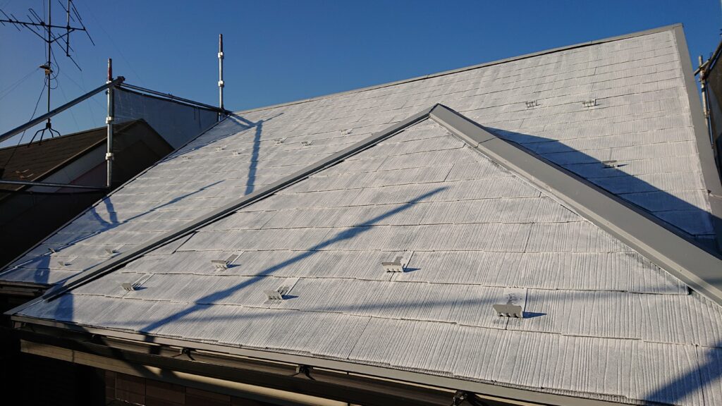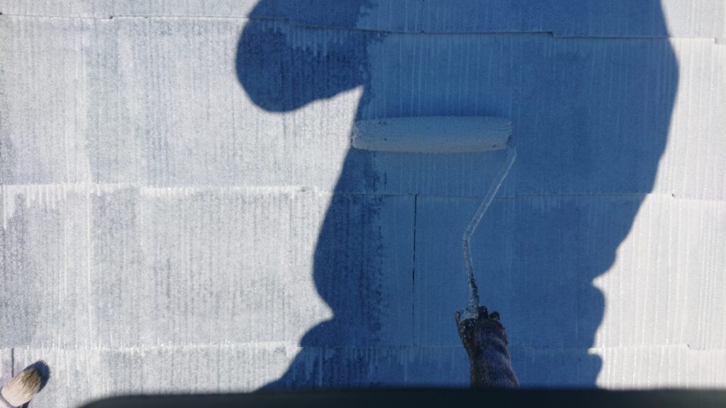下塗り材は遮熱塗料を使用すれば、どの会社の塗料でも専用シーラーがあります。塗り重ねて作業を行いました。
